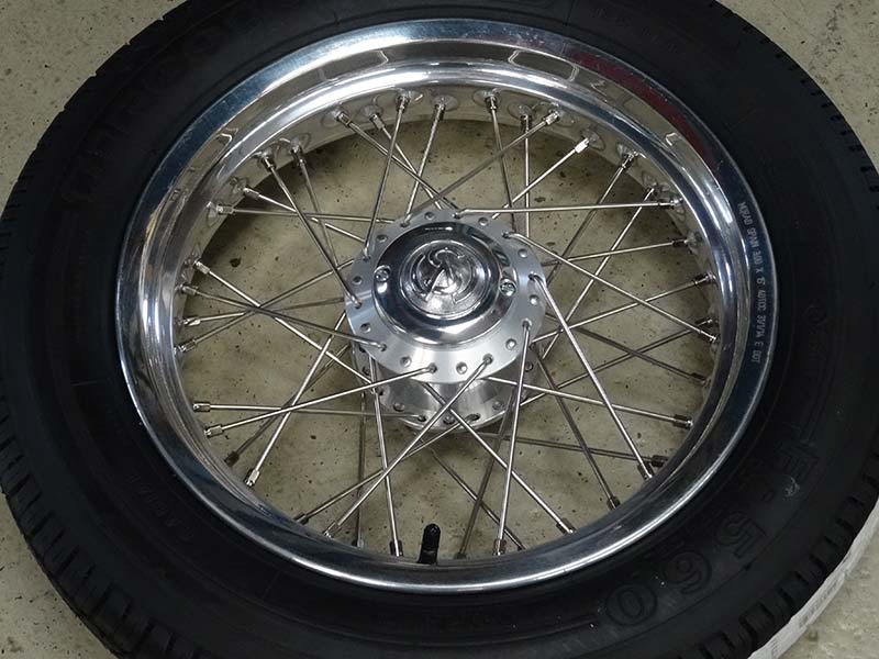 Variante B "Schwenker" 14 Zoll Leichtmetallrad mit Rollerreifen in 140/60 R14 oder mit 16 Zoll Drahtspeichenrad mit 3.50 x 16 Reifen (Aufpreis 110,00 Eur für schwarze Felge).