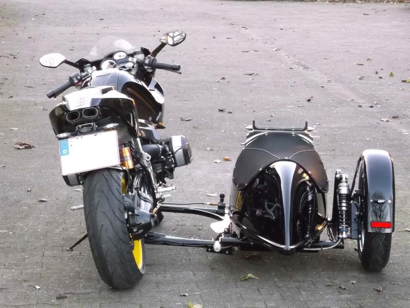 Das Seitenwagenrad ist eine Sonderanfertigung der Firma Müller-Gespanne. Der Seitenwagen ist innerhalb weniger Minuten demontierbar und die Maschine wieder solo nutzbar.