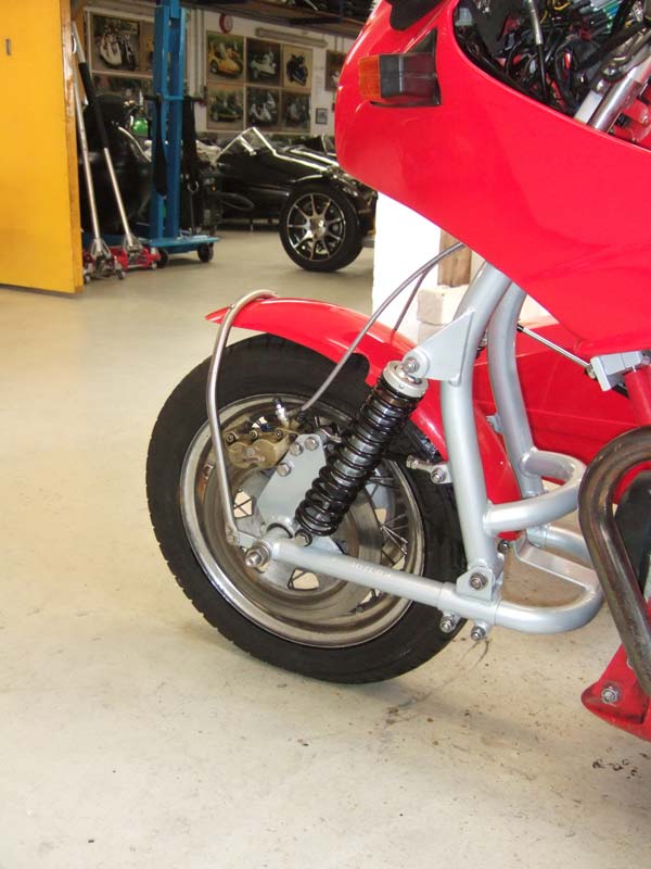 eine verstellbare Federelementverstellung am Seitenwagen und einen einstellbaren Lenkungsdämpfer. |